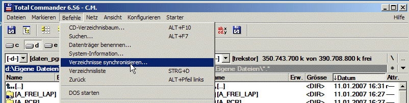 Dazu wählen wir " Befehle und dort Verzeichnisse synchronisieren".