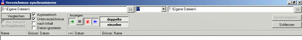 Die Dateien die in beiden Laufwerken = sind wollen wir nicht sehen so haben wir bei Anzeigen