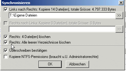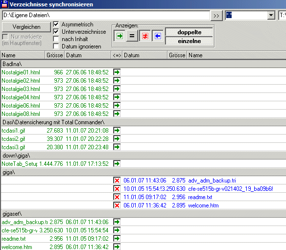 Da hat sich einiges geändert.![]() Wir haben auf D: das Verzeichnis "giga" in "gigaset" geändert diese Änderung würde ich nicht über die "synchronisation" durchführen ich würde vielmehr das Verzeichnis auf T. ebenfalls umbennen. Warum sollen wir einen Nagel mit der Zange einschlagen wenn wir dies einfacher mit dem Hammer erledigen können. Etwas Übung kann nicht schaden. |