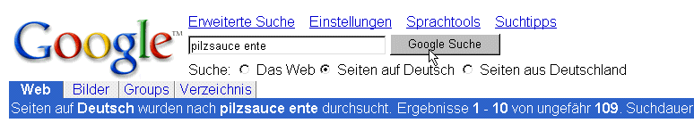 Wir erweitern den Suchbegriff +ente das + können wir weglassen.