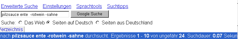 Wir schränken den Suchbegriff weiter ein diesmal mit "ohne" -rotwein -sahne.