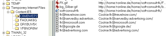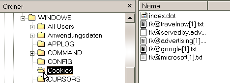 Auf unserm Weg nach unten kommen wir bei den gefürchteten Keksen (cookies) vorbei. Hier ist die Brutstätte für Viren. Wie Sie diese Löschen werde ich in einem späteren Kapitel zeigen. |