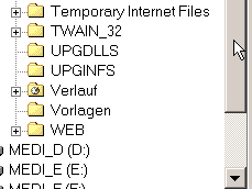 Bei den Cookies gab es kein + dafür haben wir auf den Ordner geklickt. Nun hangeln wir uns bis zu den den Temporary Internet Files den derzeitigen Internet Dateien. Wenn Sie nicht wissen wie, dann zeigen Sie mit der Maus auf den senkrechten Ziehbalken; halten die linke Maustaste gedrückt und ziehen die Maus nach unten oder Klicken Sie auf den Abwärtspfeil oder auf den Zwischenraum zwischen Balken und Abwärtspfeil. |