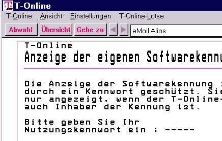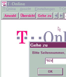 Um unsere Benutzerkennung herauszubekommen müssen wir t-online über die Software aufrufen und in Gehezu *97# eingeben
