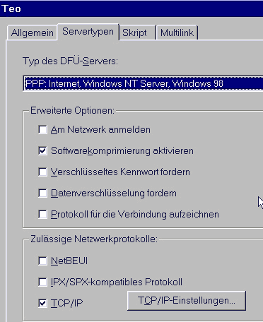 Wenn wir eine neue DFÜ-Verbindung erstellen so müssen wir einige Angaben machen.