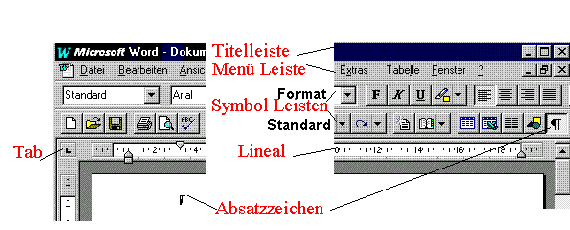 Schalten Sie unter Ansicht das Lineal, die Symbolleisten Format und Standard ein und in der Standardleiste einblenden.