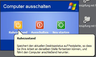 Der PC fährt schneller wieder hoch wenn Sie den momentanen Zustand speichern und später in diesem Zustand wieder weiter machen.