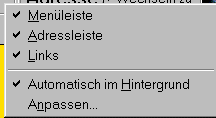 Falls die Leisten im Vollbildmodus verschwinden fahren Sie mit der Maus an den oberen Bildschirmrand klicken mit der rechten Maus in die Menueleiste und entfernen den Haken vor Automatisch im Hintergrund. |