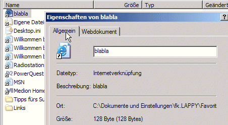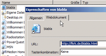 Aha die Datei ist eine Verknüpfung das zeigt uns schon der kleine gebogene Pfeil Internetverknüpfung sagt uns der Text.