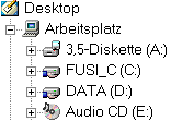 ![]() | Für das Netz freigegebene Laufwerke oder Ordner haben einen Arm. Liegt eine Audio-CD im CD-Laufwerk so zeigt der Explorer ein anderes Symbol als bei einer Daten-CD. |