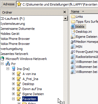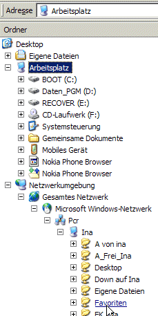 Im Explorer auf dem "Spenderpc" öffnen wir das "Quellverzeichnis" hier Favoriten SIEHE PC<==>PC DANN machen wir das Zielverzeichnis im Netz Favoriten sichtbar. Aber nicht öffnen! |