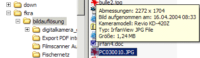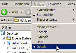 Wir öffnen nun das Verzeichnis mit den Bildern. Gegebenenfalls ändern wir Ansicht auf Detail.