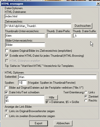 | Leider müssen Sie all die Felder ausfüllen, sich Gedanken über die Namen machen. Zielverzeichnisse anlegen. Aber zur Belohnung erhalten Sie internetreife Seiten. Nun jammern Sie nicht. Ich mußte da auch durch. Zu guter Letzt macht es dann doch Spaß. Export statt Start. So kann es werden. |