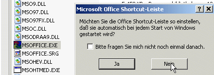 In der Office Shortcut-Leiste klickst Du mit der rechten Maus auf den Knopf für den Aufruf Deines Schreibprogramms und erzählst mir was dort steht.