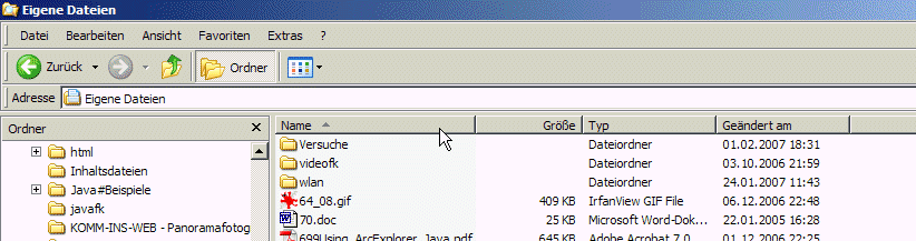 Sie können Ordner und Dateien mit Klick auf den Spaltenkopf (hier Namen) sortieren.