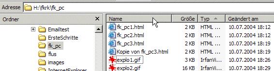 Klick auf einen Ordner (hier fk_pc) öffnet diesen und zeigt seinen Inhalt im rechten Fenster. Beachte die Adresse. |