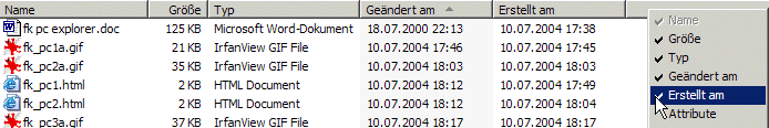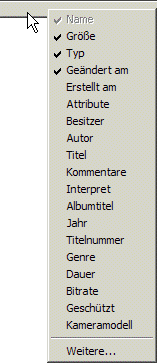 Maus in die Leiste der Details zeigt weitere Kategorien die man in die Leiste aufnehmen könnte.