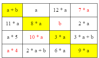 a+b; b;3a+b;2a+b alles leicht im Kopf zu rechnen.